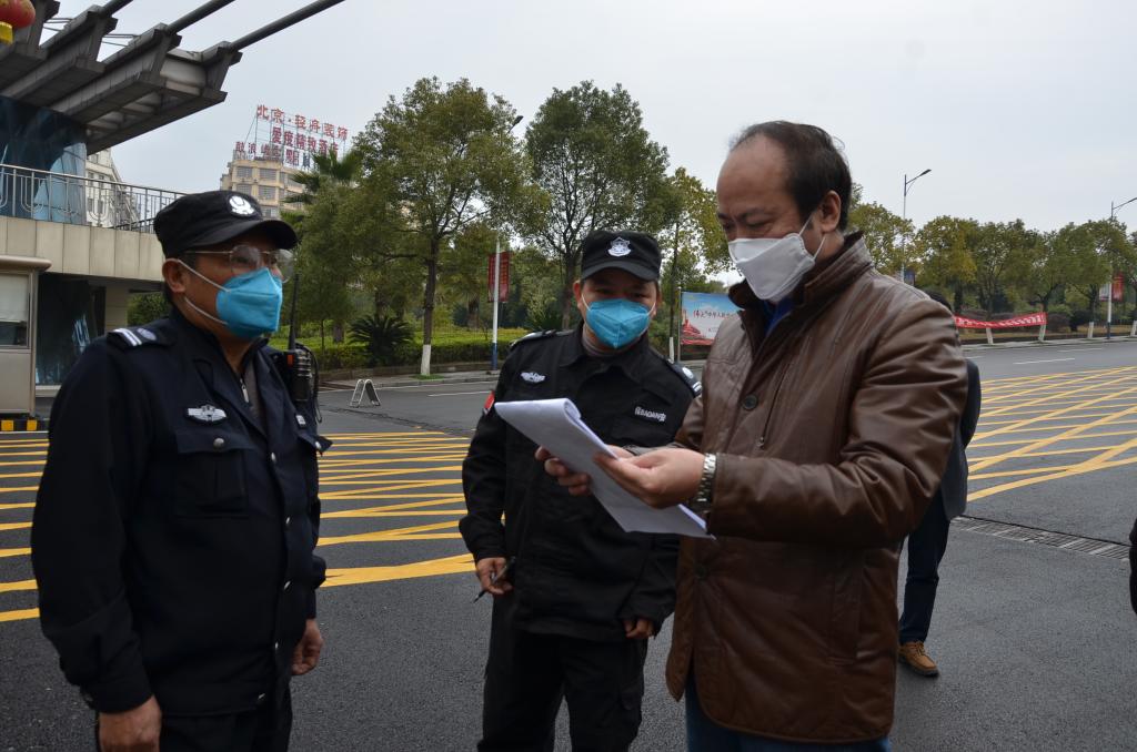 在西大门,陈金印、史焕平一行详细检查了出入管理情况,详细查看了出入人员登记册,叮嘱工作人员一定认真履行职责,把工作做深做细,所有出入人员都要核实身份、详细登记出入时间、办公地点并测量体温,并对保卫处一线人员为学校把好“第一道关卡”表示感谢,叮嘱他们带好口罩,加强自身防护。校领导一行听取了保卫处负责人关于校园封闭管理情况的汇报,并实地检查校园封控情况,要求保卫部要严格执行相关规定,对入校行人及车辆严格把关。