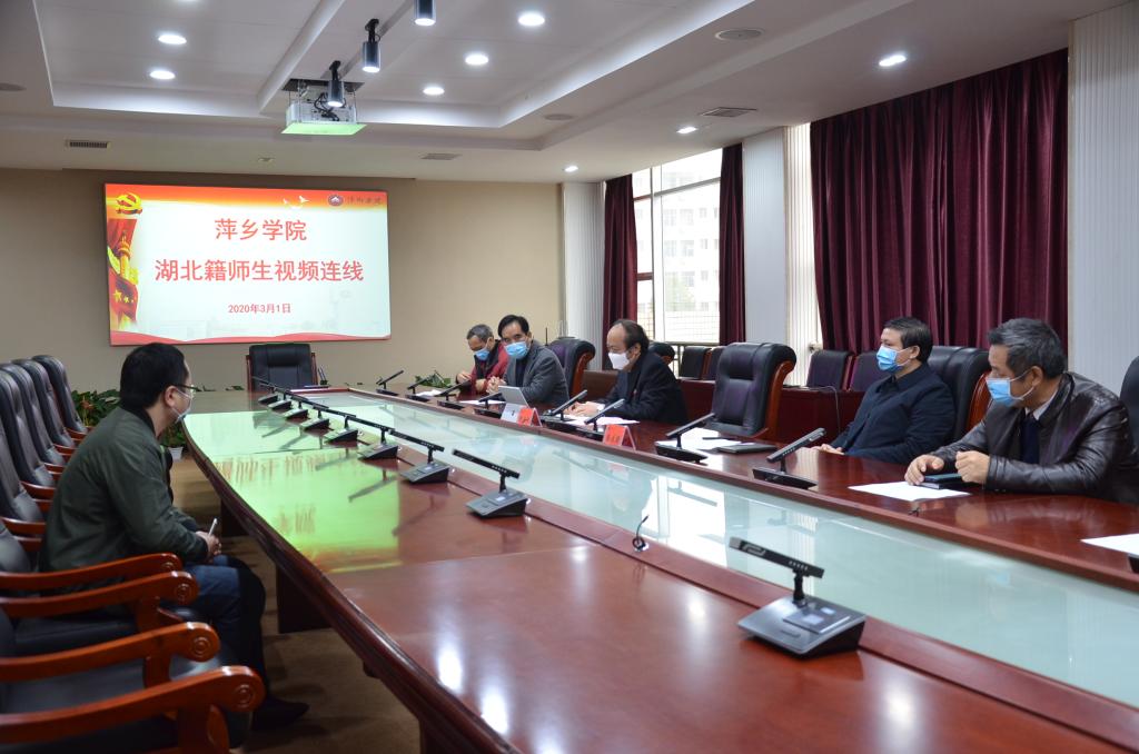 3月1日上午,一间网络会议室把776net必赢官网和湖北的萍院师生紧紧连在一起。党委书记陈金印与8名在鄂师生代表视频连线,倾听他们在疫情防控期间的经历和感受,勉励他们以厚德至善、励学笃行、团结奋斗、共克时艰的担当作为,诠释对国家的赤诚、对同胞的大爱,彰显萍院师生智勇真纯的初心和使命。党委委员、宣传部长陈永国以及党政办、人事处、学工处、网络与教育中心等部门负责人参加会议。
