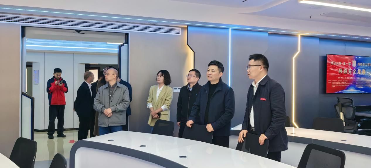 刘晓进一行走进必赢信息与计算机工程学院,参观必赢数字经济产业学院。李希勇详细讲解了必赢数字经济产业学院、数据中心、软件与信息安全测评中心、萍乡市数字化发展与安全研究中心、湘赣边数据资产交易研究中心等,并介绍了学院“政校企合作·产学研协同·实训实习就业一体化”育人模式及服务地方数字经济等工作,刘晓进对学院育人模式、取得的丰硕成果和服务地方经济工作充分肯定,并给予了高度评价。