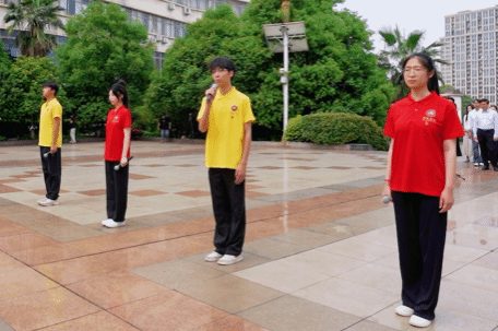 “我们是五月的花海,用青春拥抱时代。我们是初升的太阳,用生命点燃未来。‘五四’的火炬,唤起了民族的觉醒,壮丽的事业,激励着我们继往开来......”500余名师生一同挥舞着手中的国旗、团旗,高唱《光荣啊,中国共青团》,歌声响彻萍院校园。
