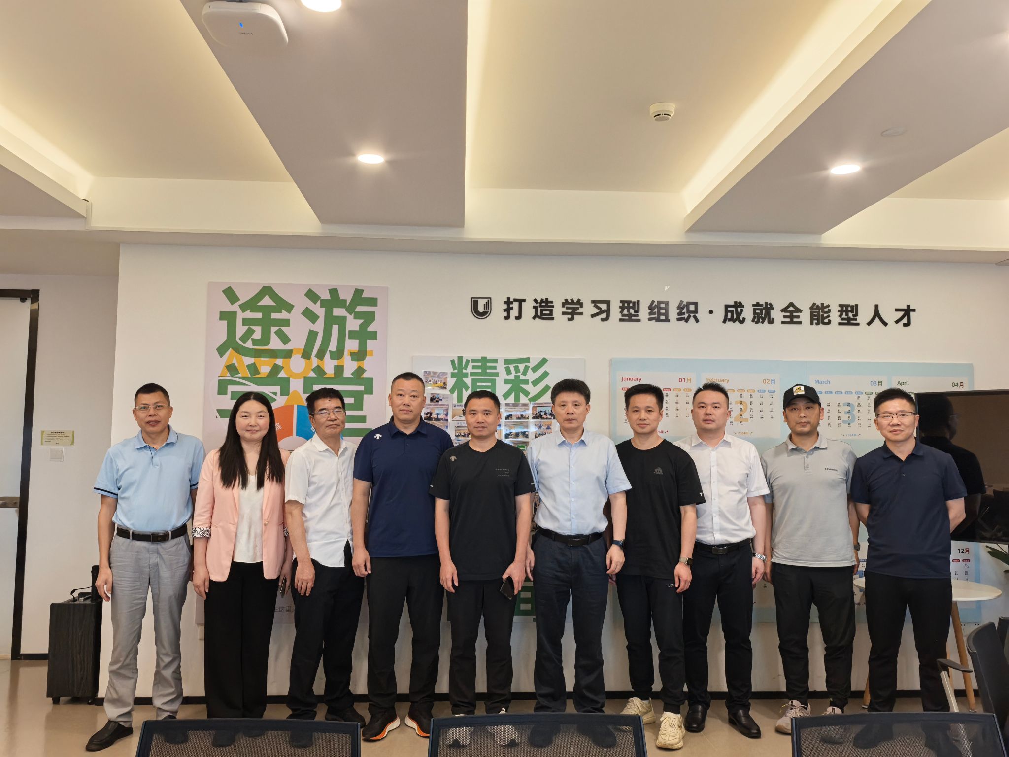 随后,刘林芽一行到途游(长沙)科技有限公司开展访企拓岗工作。公司负责人李建才、王碧华对刘林芽一行的来访表示热烈欢迎,详细介绍了公司的发展历程、业务范围、企业文化、人才需求等情况。刘林芽表示,学校始终坚持以社会需求为导向,注重学生实践能力和创新精神的培养,希望通过此次访企拓岗活动,进一步加强与企业的沟通与合作,在传承安源精神、非遗文化、研发合作、人才培养、实习就业、奖学奖教等方面实现资源共享、优势互补,为企业输送更多优秀人才,同时也为学生搭建更好的就业平台,促进毕业生高质量就业。