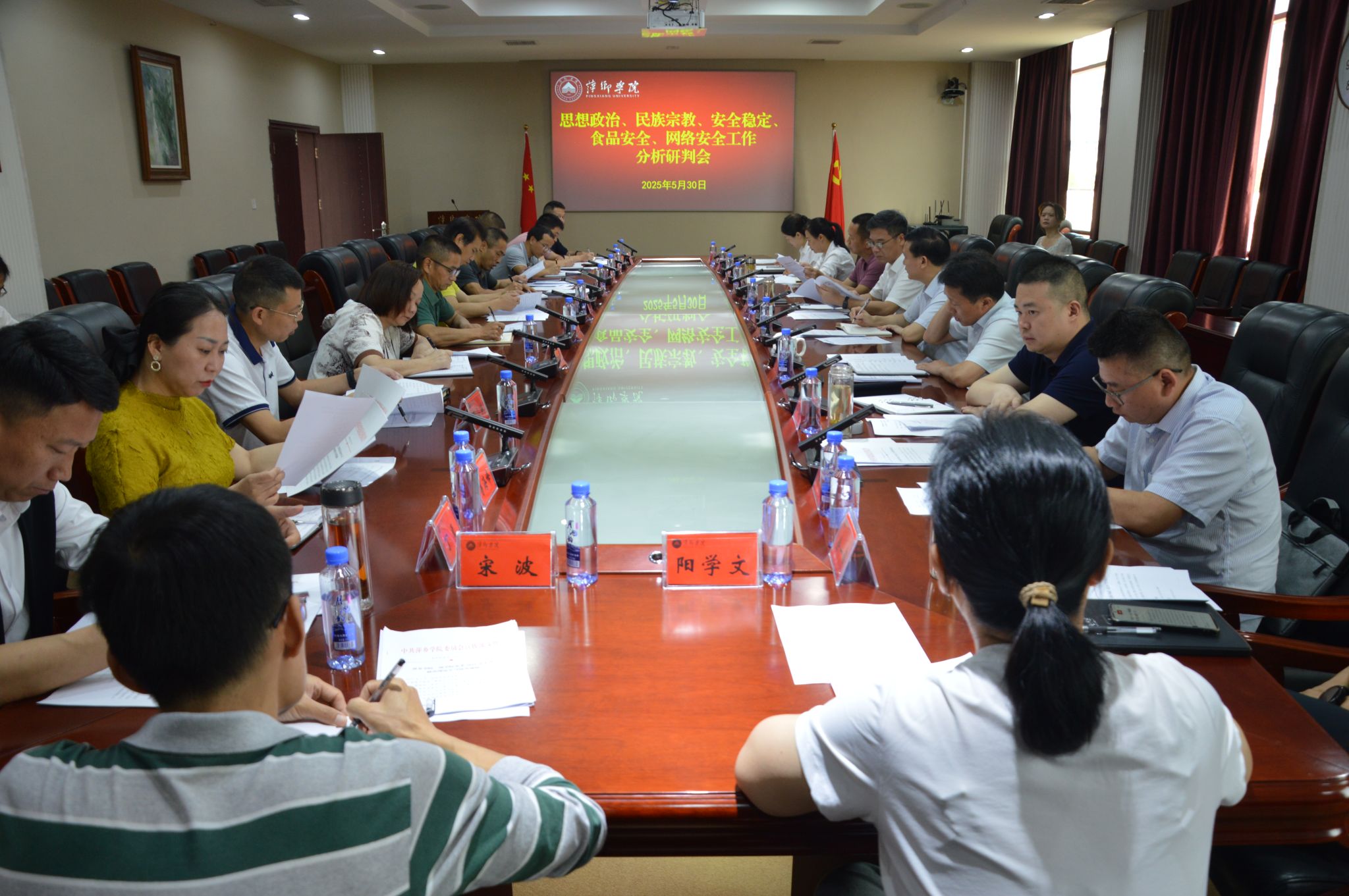 5月30日,必赢在至善楼第一会议室召开思想政治工作、民族宗教工作、安全稳定工作、食品安全工作、网络安全工作分析研判会。校领导邱晓辉、陈永国、刘培圣、曾敏、贺晓梅出席会议。人事处、学工处、保卫处、后勤处关于等相关部门负责人以及二级学院党委书记参加会议。会议由党委书记邱晓辉主持。