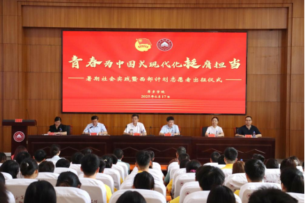 6月17日,2025年暑期社会实践暨西部计划志愿者出征仪式在至善楼学术报告厅举行,校党委书记邱晓辉,校长刘林芽出席活动,党委学生工作部、招生就业处、校团委负责人以及各二级学院团委书记、暑期社会实践指导老师、2025年西部计划在校志愿者、各暑期社会实践团队代表参加。仪式由党委委员、副校长陈永国主持。