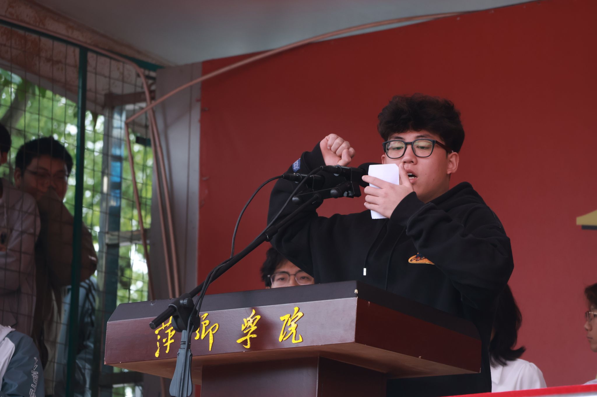 在青春激昂的《运动员进行曲》中,国旗、校旗、会旗方阵率先入场,民兵护校队、运动员、裁判员代表队紧随其后。十一个二级学院代表方阵依次亮相,他们笑容盈面、朝气蓬勃,尽显萍院青春风采。