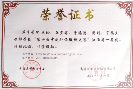 “第四届中国外语微课大赛 ”江西省一等奖