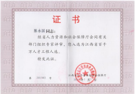 陈永国入选江西省百千万人才工程人选