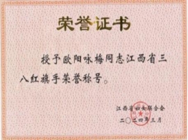 欧阳咏梅荣获江西省三八红旗手荣誉称号