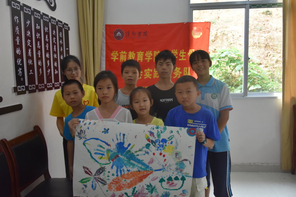 学前教育学院社会实践服务队在5天的实践过程中开展了丰富多彩的兴趣课堂,有属于大丰村独特的音乐活动《梦里桐花乡》,有森林里的舞会面具手工制作活动,有多彩的纸艺花手工制作,有留住记忆的相框手工制作活动,有象征儒雅风度的扇子画,有送给妈妈的木镯画,有神奇叶脉拓印的水粉画等等。同时,还有动感的健美操活动、安静的瑜伽活动和精彩的安全知识讲解。促进孩子手脑并用并激发孩子无限潜能,课程形式多样,活动内容丰富。尤其是学前教育学院2019届优秀毕业生叶玲今年抽空再次来到大丰村开展葫芦丝义务支教活动,得到广大村民和儿童的高度好评。