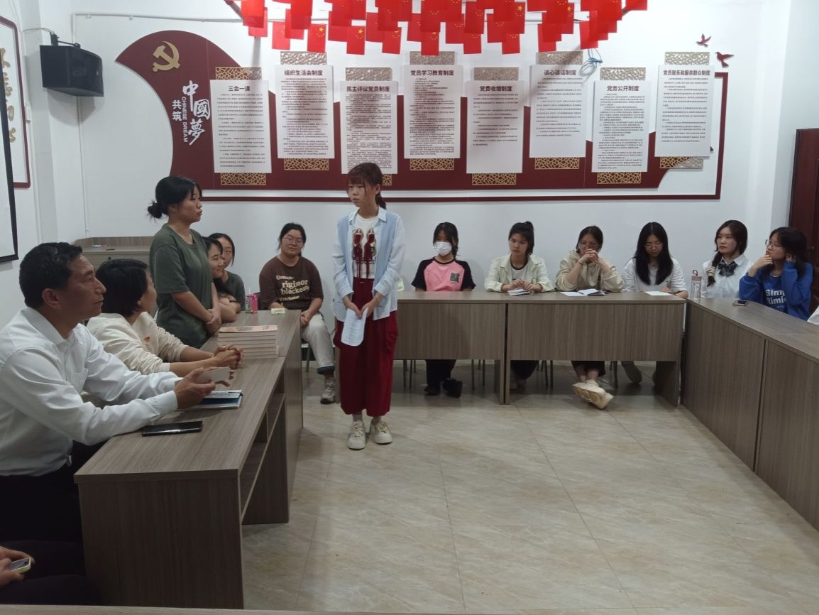 第二个环节是回首峥嵘岁月,讲述英烈故事。曹金萍向同学们介绍了江西省丰富的红色资源,讲述了红色书籍《回望峥嵘读初心》理想信念篇里莲花君子刘仁堪用脚蘸鲜血写下“革命成功万岁”的感人故事,同学们从中感受到了革命先辈们为了高尚的理想信念勇于献身的崇高精神。结合当下正在进行的党纪学习教育,曹金萍讲述了书中纪律规矩篇“南瓜藤上长出银毫子——‘小菜王’的意外发现”的故事,故事体现了共产党人严守纪律、不拿群众一针一线的高尚品德。她鼓励大家养成爱读书、读好书、善读书的习惯,从书中获取智慧和力量。