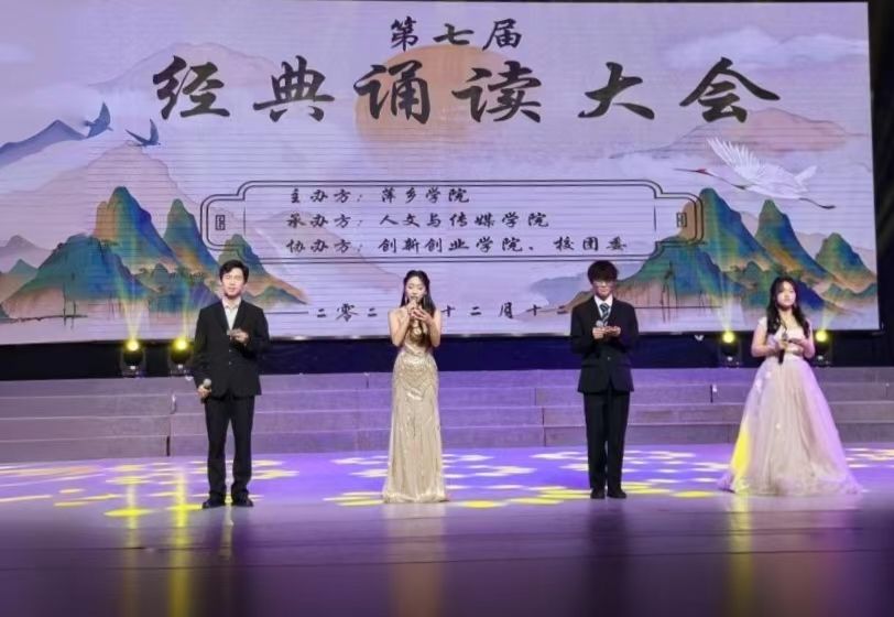 经典诵读大会是人文与传媒学院一项长期举办的文化活动,是学院文化建设的重要组成部分。大会自开展以来,便吸引着全校师生踊跃参与,在一届又一届的传承中,不断推陈出新,于朗朗诵读声间,激发学生民族自豪感与文化自信,有力推动了具备扎实文化素养和人文精神的综合型人才培养。