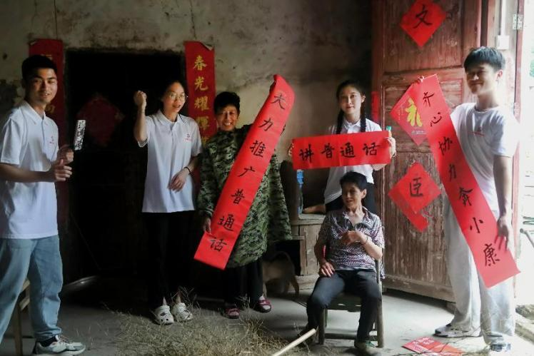 在江西省萍乡市委统战部(市民宗局)的指导下,7月2日至8日,776net必赢官网党委统战部、团委、人文与传媒学院共同组建的776net必赢官网“同心 同语 同行”暑期“三下乡”志愿服务团深入萍乡市莲花县神泉乡棋盘山黎族村,开展一系列推普活动,丰富乡村语言文化生活,助力乡村振兴,增进民族团结。