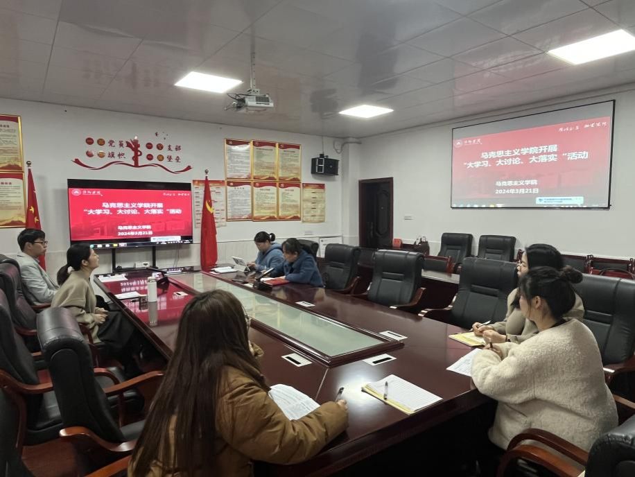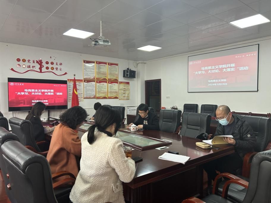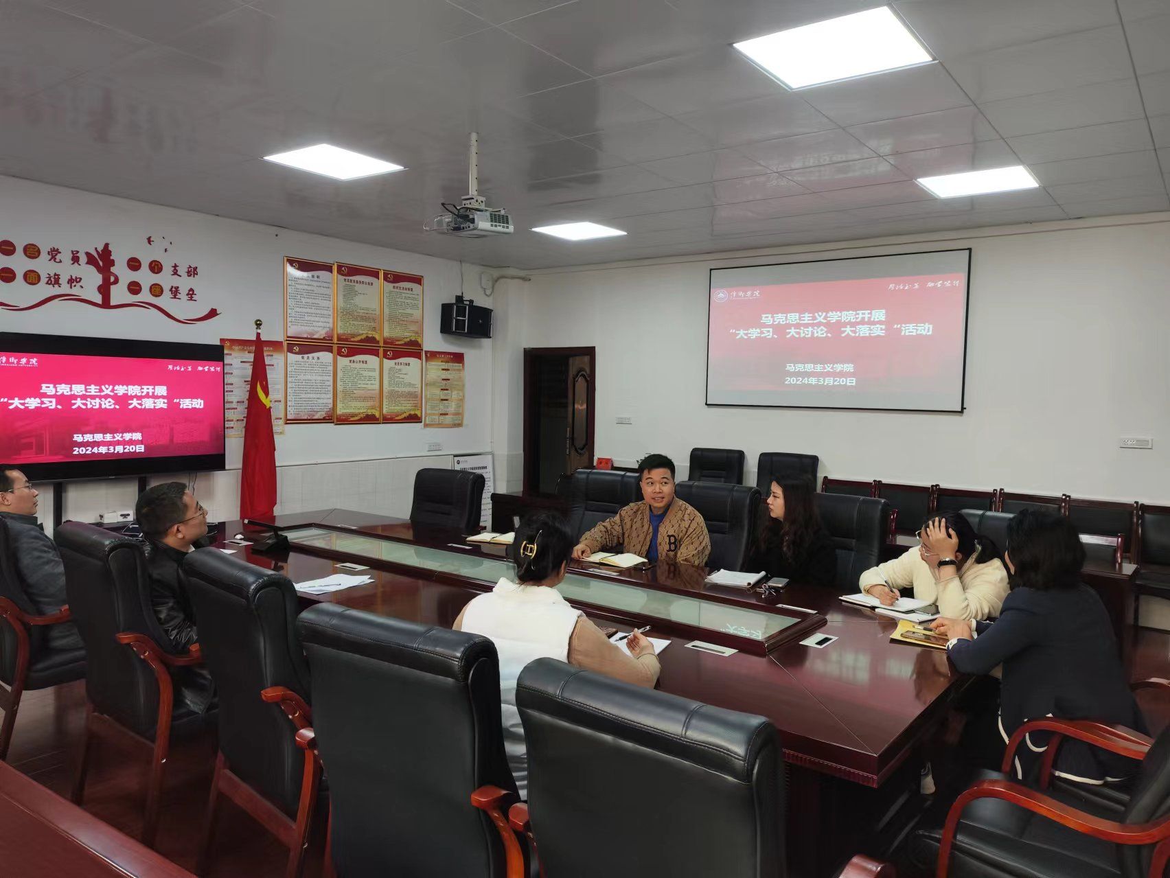 为深入学习贯彻落实习近平总书记“3·18”重要讲话精神,2024年全国教育工作会议和全省教育工作会议精神,凝心聚力助推学院高质量发展,马克思主义学院开展“大学习、大讨论、大落实”专题活动。学院党委高度重视,精心组织、周密部署。学院全体教职工参加活动。