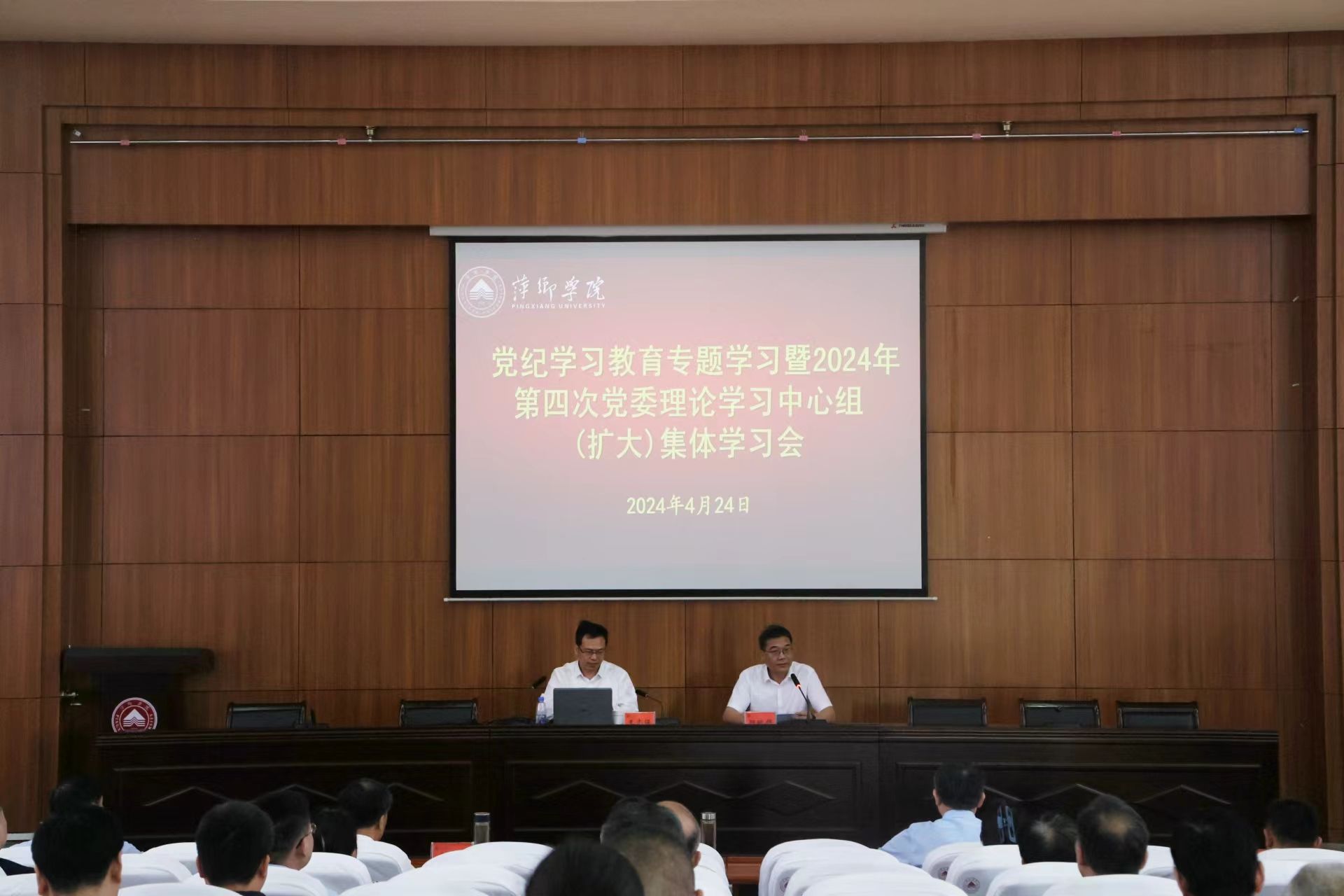 4月24日,必赢在至善楼学术报告厅举行党纪学习教育暨党委理论学习中心组(扩大)集体学习会,深入学习贯彻习近平总书记关于党纪学习教育的重要讲话和重要指示精神,认真贯彻落实中央、省委有关会议和文件精神,专题学习《中国共产党纪律处分条例》。学习会邀请中共江西省委党校党史党建教研部副主任王志强教授作《中国共产党纪律处分条例》专题辅导报告。校党委书记邱晓辉主持报告会并讲话。校党委理论学习中心组全体成员,副处级及以上干部聆听报告。