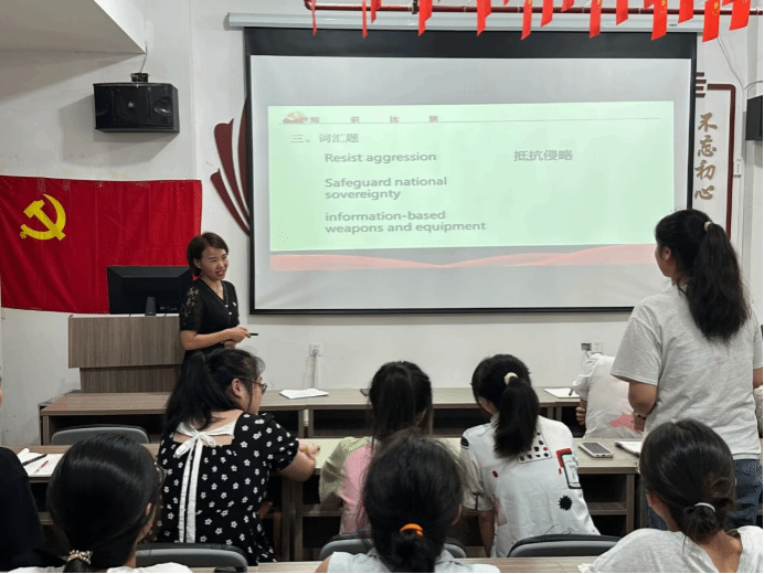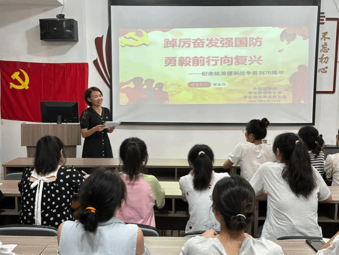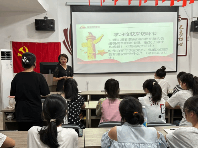 为深入贯彻落实《776net必赢官网2023年“踔厉奋发强国防,勇毅前行向复兴”全民国防教育月活动的通知》文件精神,增强师生国防观念、国防素养、爱国强军意识、培养师生铭记历史和责任担当精神,9月19日,外国语学院学生党支部在18栋“红管家”一站式学生社区开展了一场别开生面的主题党日活动。外国语学院党委书记刘佳萍莅临指导,活动由外国语学院党委委员、英语学生党支部书记曹金萍主持,支部全体党员参加。