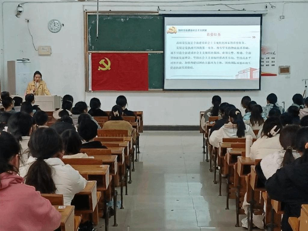 首先,钟倩书记简要介绍了党的二十大召开的时间、背景和主题。同时,书记着重强调了大会的主题。其次,书记讲解了中国共产党的使命任务,表明在前进道路上必须要牢牢把握五个重大原则以及牢记五个必由之路。此外,全党同志务必不忘初心,牢记使命、谦虚谨慎,艰苦奋斗、敢于斗争,善于斗争。最后,钟倩书记表示,新征程的路上充满难以预料的艰难险阻,全体同志需要加强历练斗争,增强斗争本领,永葆斗争精神。广大青年要把学习党的二十大精神,用习近平新时代中国特色社会主义思想武装头脑与持续深入学习习近平总书记关于青年工作的重要思想贯通起来,通过对思想整体的全面系统学习,形成全局观念,更好把握青年的定位和脉络。
