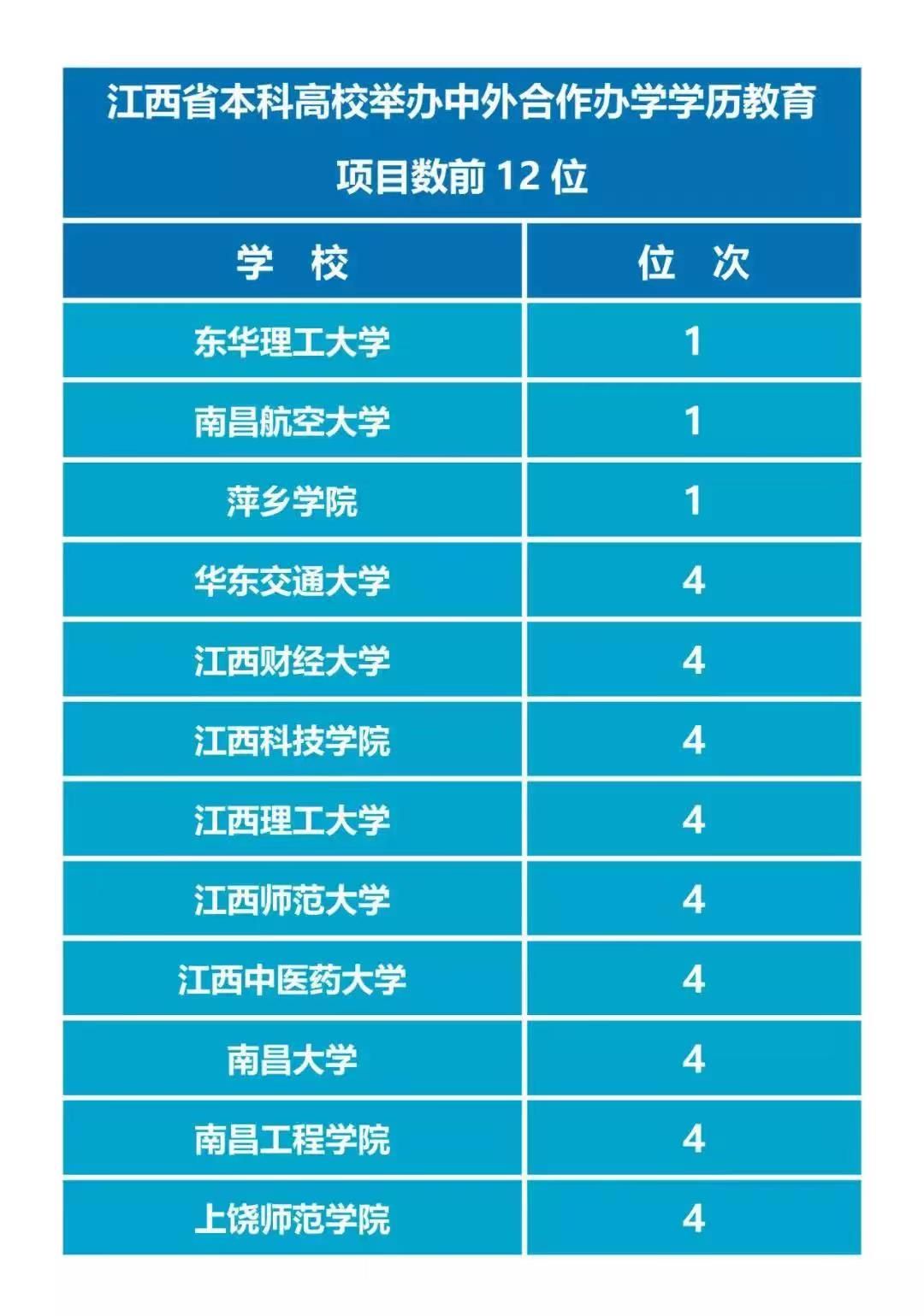 图6. 必赢中外合作办学项目数连续三年位列江西省本科高校举办中外合作办学学历教育项目数前列