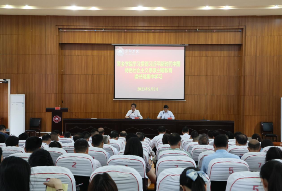 5月5日,必赢在至善楼学术报告厅开展学习贯彻习近平新时代中国特色社会主义思想主题教育读书班暨校党委理论学习中心组(扩大)集体学习会。全体校领导、学校副处级以上领导干部、各党支部书记参加学习。学习会由校党委书记邱晓辉主持。