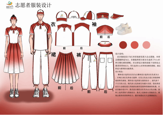 此次志愿者服装设计聚焦“中国新旅游、萍乡正青春”主题,必赢师生团队精心谋划、精致打造、精美呈现,组织师生团队共计设计30余套具有萍乡地域特色的志愿者服装。经过反复打磨与修改,最终选定两套作品作为旅发大会志愿者服装,一套以武功山绿色旅游为主题,用于武功山分会场,主体颜色以绿色为主,T恤印满重峦叠嶂的武功山,金色的云雾缠绕着武功山,反映出“观日景如金在冶,游人履步彩云间”的美丽风光;另外一套以彰显安源红色文化为主,用于安源分会场,款式设计颜色以红色为主白色点缀,面料上选用柔软与坚挺结合,款式上是修身与坚挺结合,展现志愿者的青春和活力。