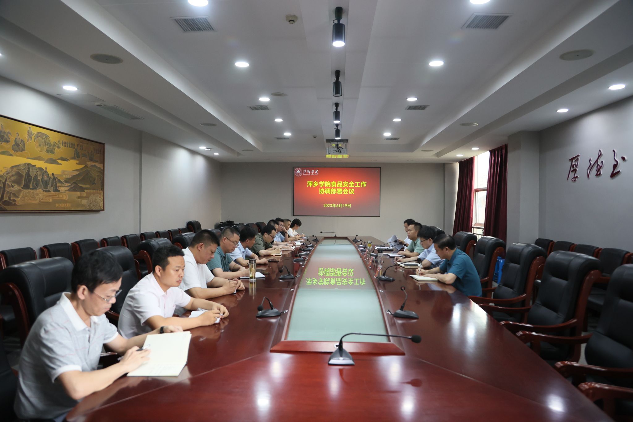 6月19日,必赢在至善楼第二会议室召开校园食品安全工作部署推进会,校长刘林芽,党委委员、副校长陈永国、刘培圣出席会议。学校食品安全工作领导小组成员单位负责人参加会议。会议由刘培圣主持。